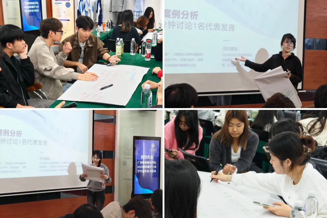 为增强见习活动的互动性,各小组围绕企业提供的真实传播案例展开讨论。之后由各小组代表上台进行汇报发言。这一环节锻炼了学生的分析表达与团队协作能力。