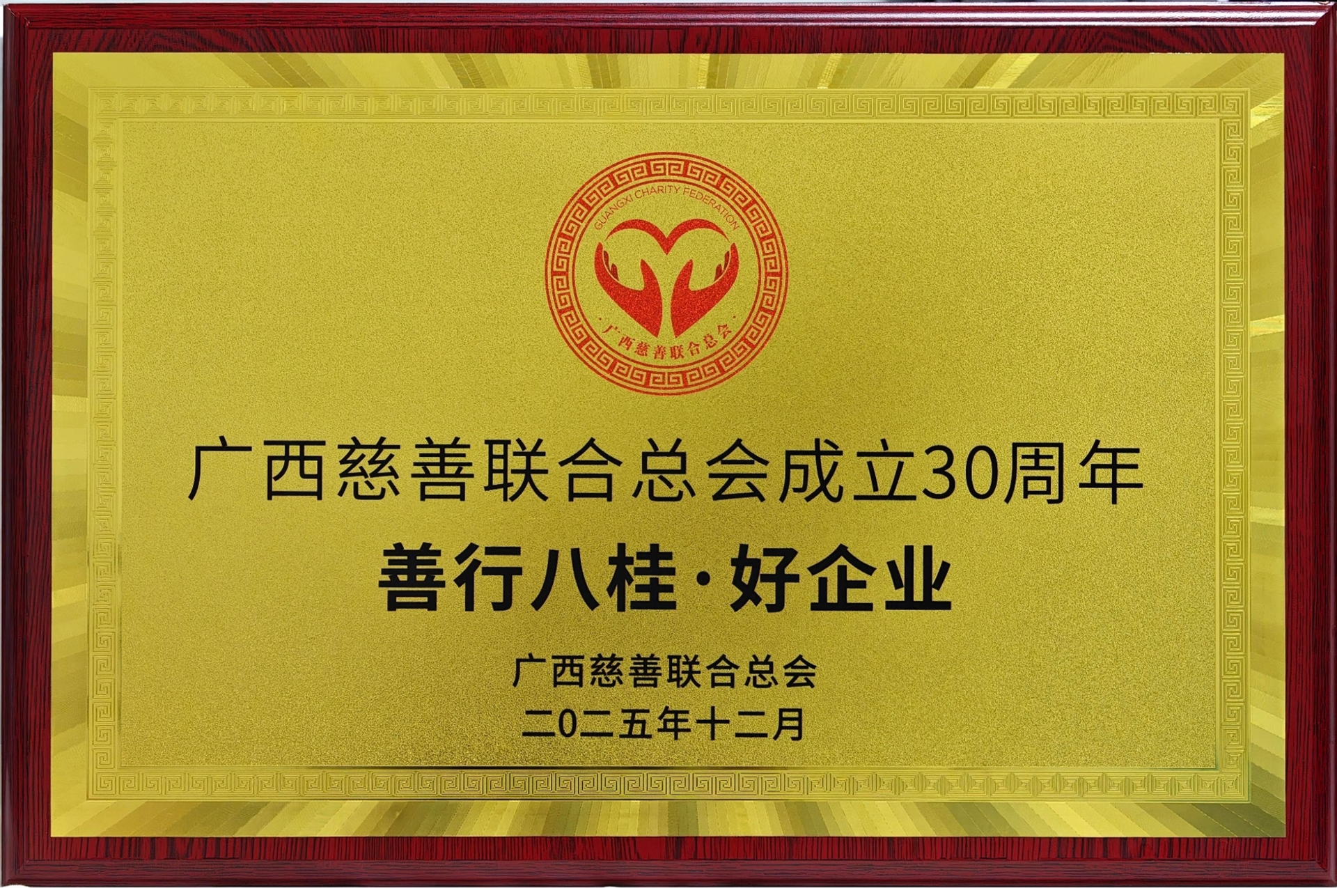 会议还向广西慈善事业发展中作出突出贡献的先进典型致谢,为建会30周年“特别贡献人物”“善行八桂·慈善之星”“善行八桂·好人物”“善行八桂·好伙伴”“善行八桂·好项目”“善行八桂·好企业”获得者颁发纪念章、牌匾和证书。百裕集团凭借长期以来在公益慈善领域的深耕与贡献,荣获“善行八桂·好企业”荣誉称号。